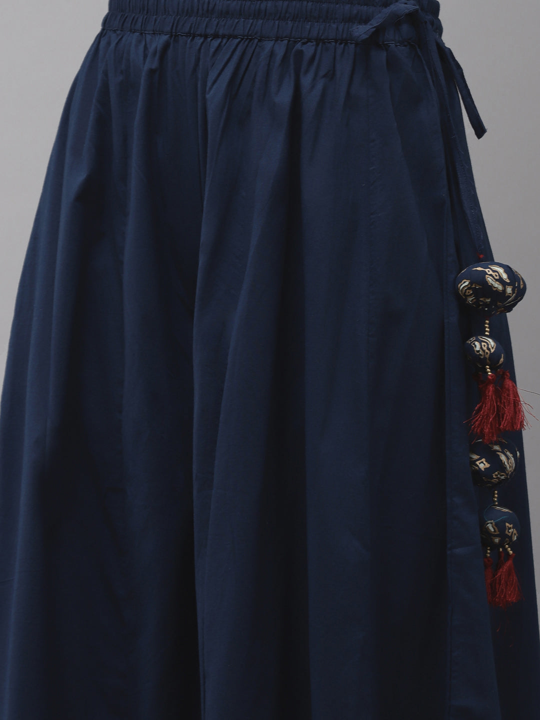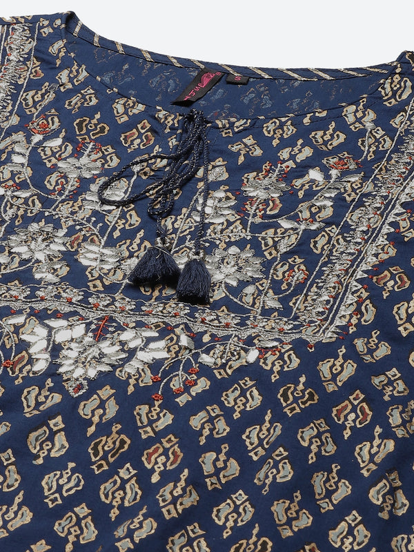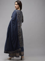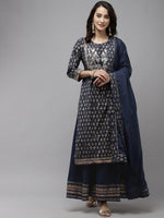 Navy blue embroidered Kurta with Palazzos with dupatta