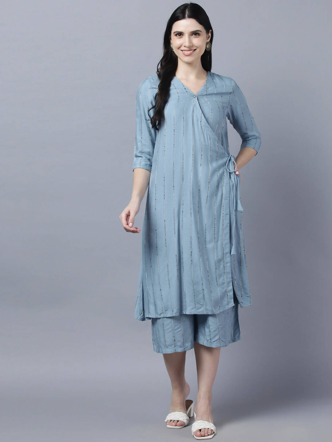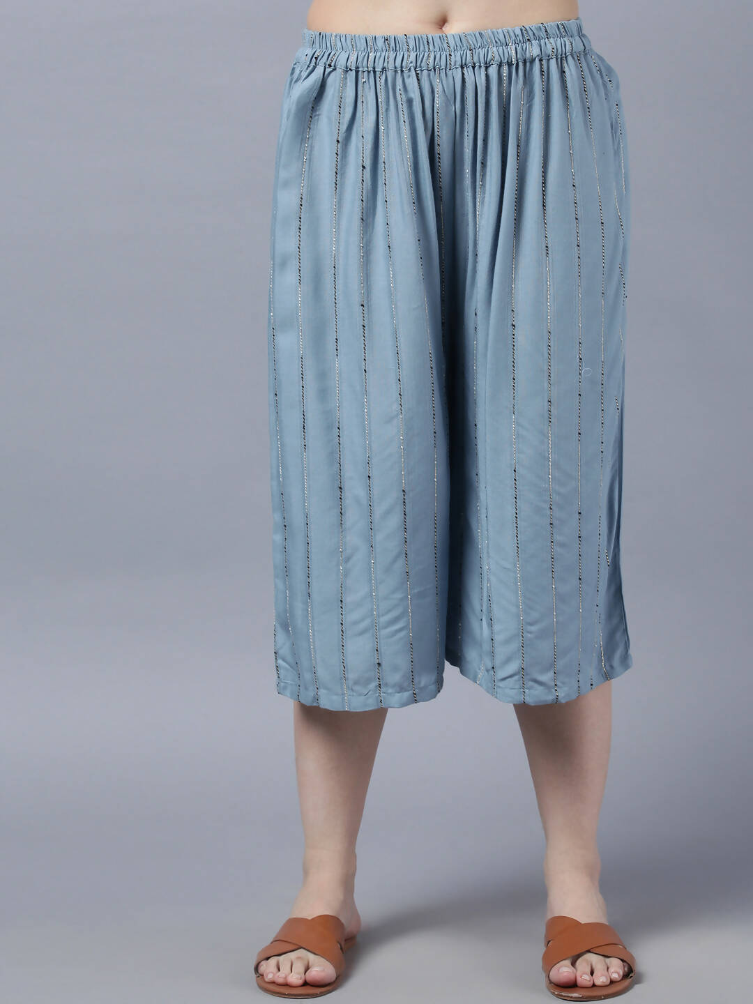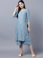 Myshka Stylish Grey Viscose 3/4 Sleeve Women's Kurta Palazzo Set