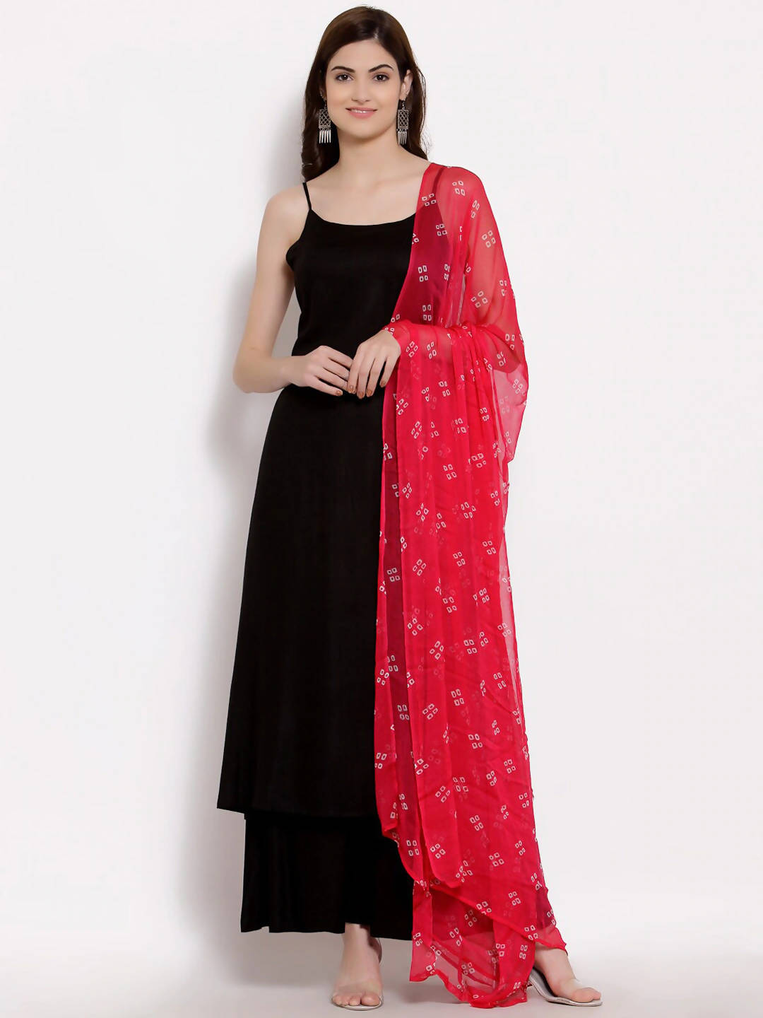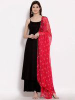 Myshka Women Black Regular Pure Cotton Kurta With Palazzos & Dupatta