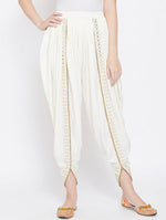 Cheera Women’s White Dhoti With Golden Lace Length: 38 Inches. Waist size : Free Size Color: White Material : RayonDisclaimer: Product color may sl...