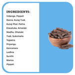 Key Ingredients– Vidanga, Pippali, Rasna, Kutaj Tvak, Kutaj Phal, Patha, Elavaluka, Amalaki, Madhu, Dhataki, Tvak, Suksmaila, Tejpatra, Priyangu, Kancanara, Lodhra, Sunthi, Marica, Pippali