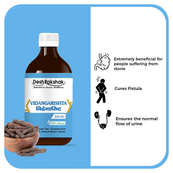 Desh Rakshak Vidangarishta / Vidangasava Key Benefits- Excessive Flow of urine Stone problem Fistula Key Ingredients– Vidanga, Pippali, Rasna, Ku...
