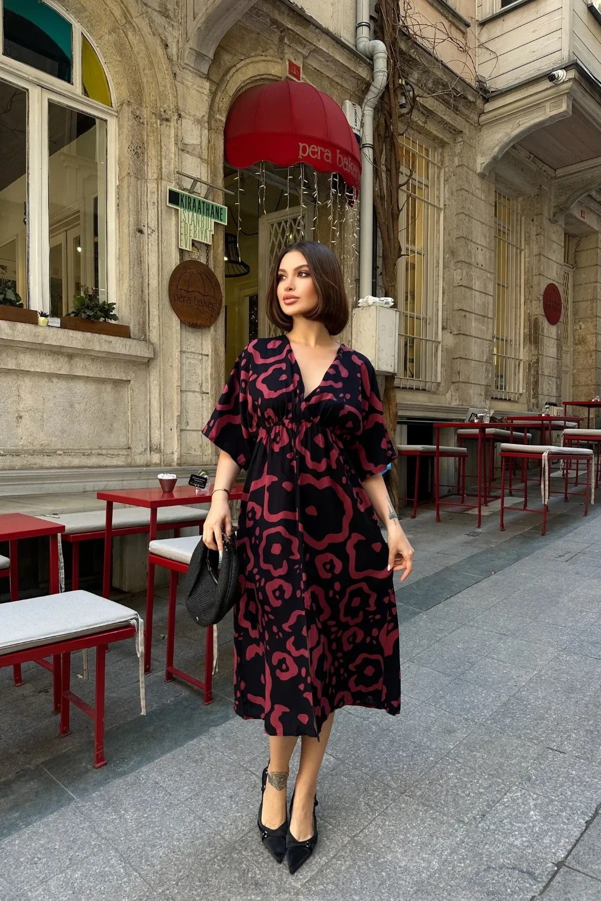 Pimu Front Slit Midi Dresses V-neck Designs For Women Party Wear - PinkAbout the Product: Style(Anarkali, Flared, Straigth): Flared Top Fabric: R...