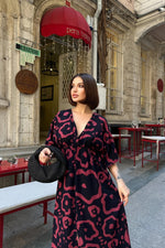 Pimu Front Slit Midi Dresses V-neck Designs For Women Party Wear - Pink