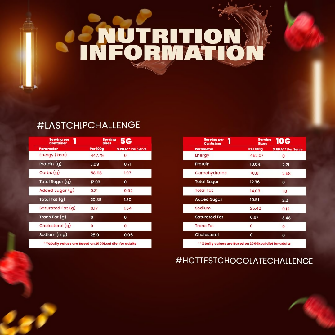 • The Deadliest Duo in Spice History: Take on the ultimate heat challenge with this explosive combo—includes 1x Jolochip Last Chip Challenge (5g) and 1x Hottest Chocolate Challenge (10g). Two brutal bites, one legendary test.