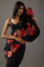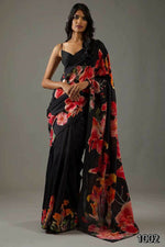 Partywear Designer Black Bright Moss Fancy Saree - Durga