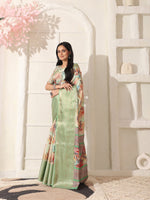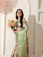 Shivam Fabrics Green Lichi Patta Fabric Printed Saree