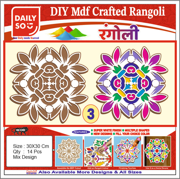 MDF Crafted Rangoli cutout of handicrafts is made of natural solid wood with a smooth surface and clear texture. cutout used for panting, art and craft, DIY project, and you can also make the Rangoli for Festivals, Pooja Home, Wedding Decor.