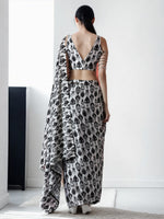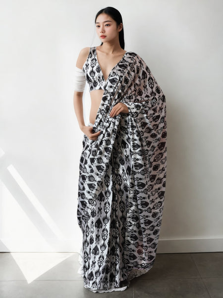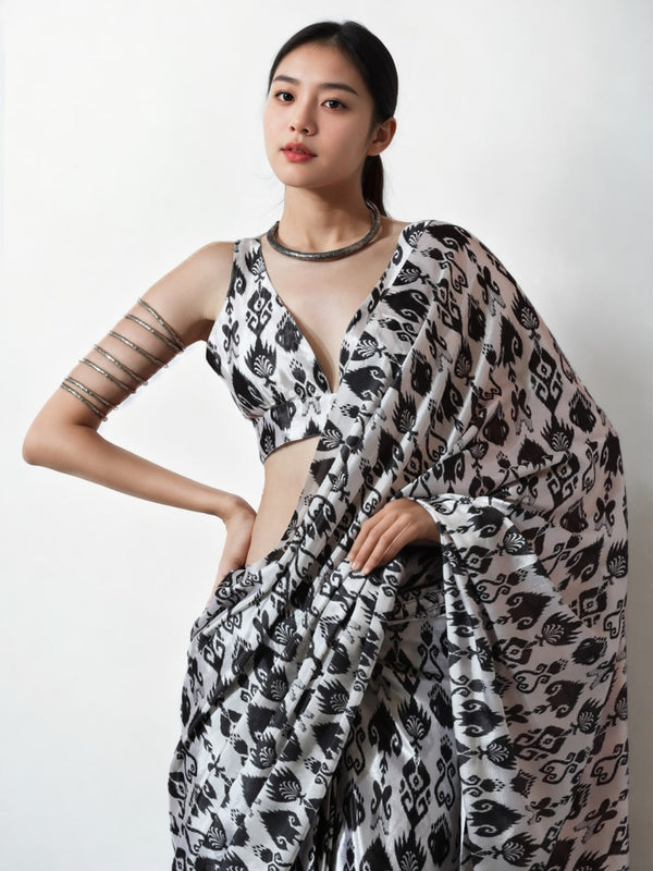 Jyoti Fashion Women's Black Chinon Digital Printed Ready To Wear Saree with Blouse - Free Size