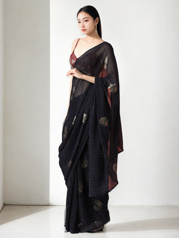 Jyoti Fashion Women's Black Marble Chiffon Printed Ready To Wear Saree with Blouse - Free Size