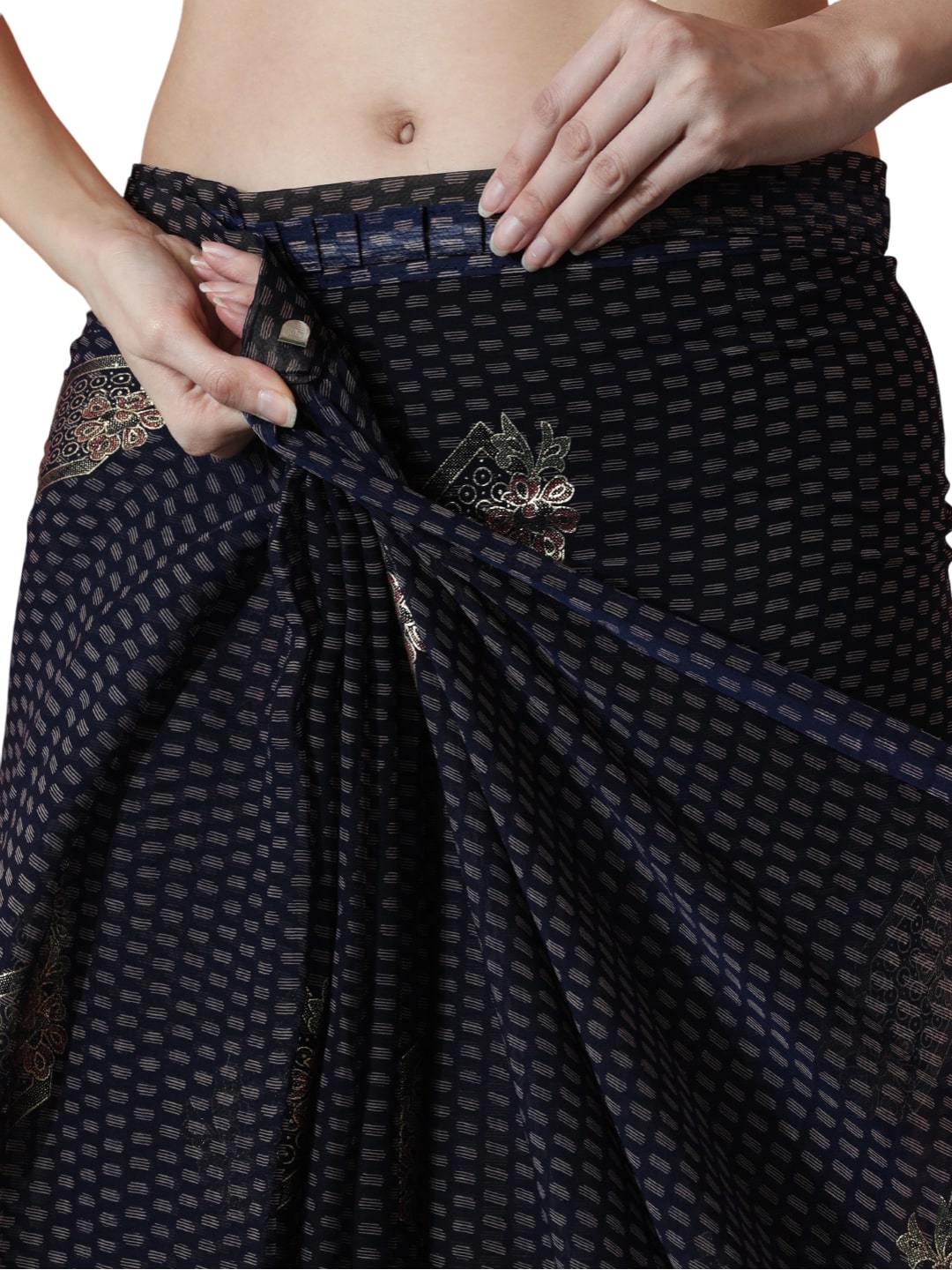Jyoti Fashion Women's Black Marble Chiffon Printed Ready To Wear Saree with Blouse - Distacart