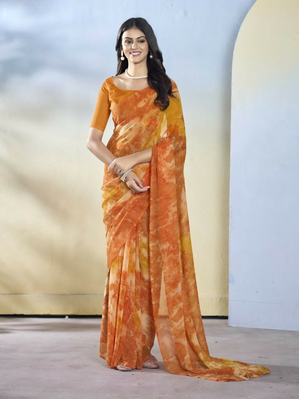 Orange Georgette Designer Printed Ready to Wear Saree - Samyana