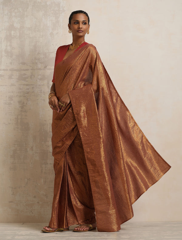 trueBrowns Brown Gold Lurex Ready To Wear Saree