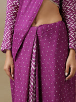 trueBrowns Purple Bandhani Printed Silk Ready to Wear Saree with BeltDescription Purple single dot bandhani printed ready saree with purple zig- za...