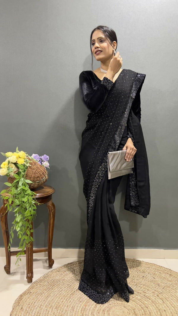 Vastranavya Black Rangoli Silk Swarovski work Ready to Wear Saree - Up to 44 Waist