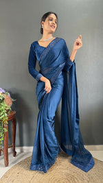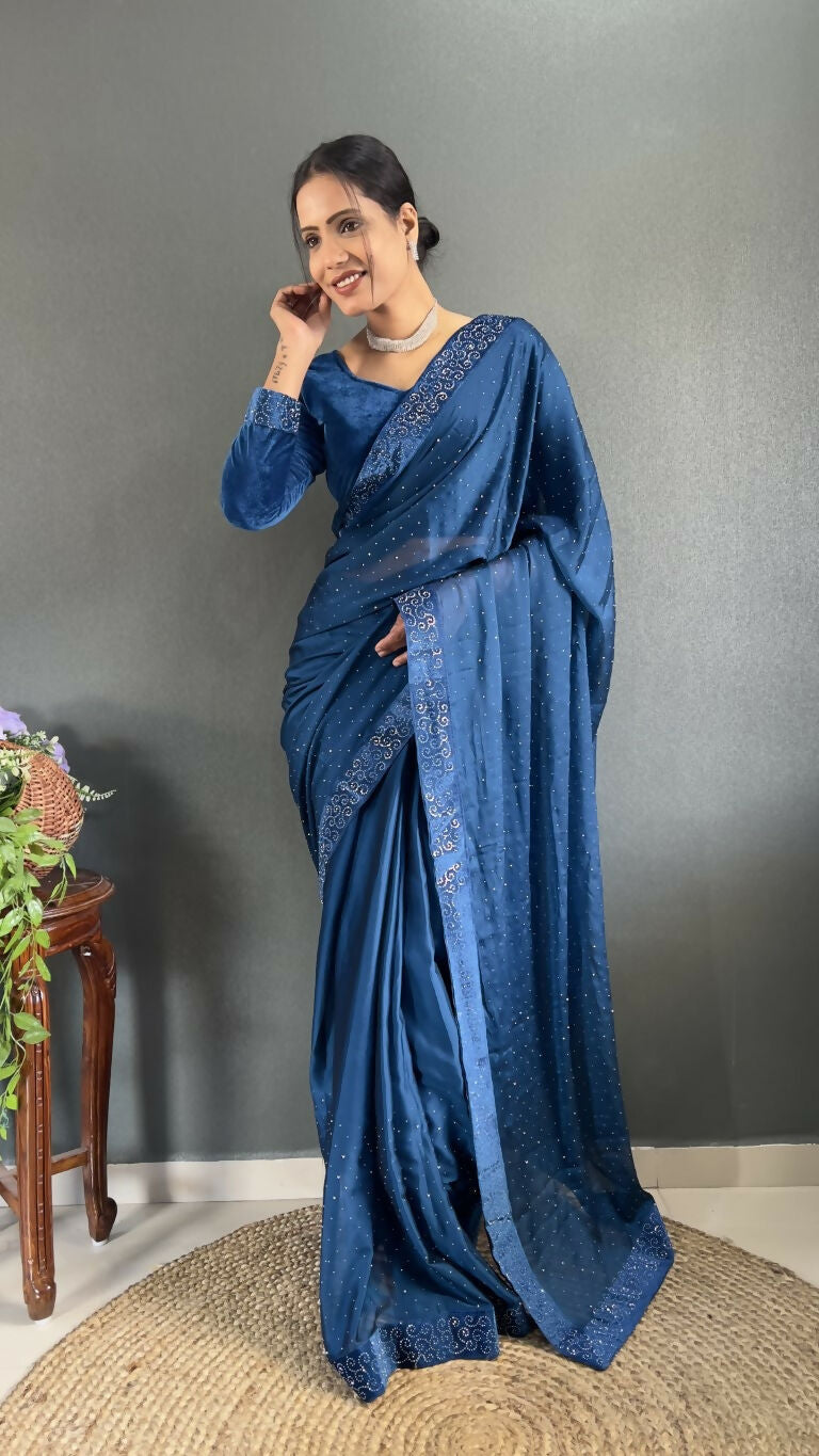 Vastranavya Teal Rangoli Silk Swarovski work Ready to Wear SareePresenting you most trending & beautiful Ready to wear Saree collection.Classic...