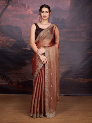 Jyoti Fashion Women's Brown Jimmy Choo Embroidered Siroski Designer Saree with Blouse