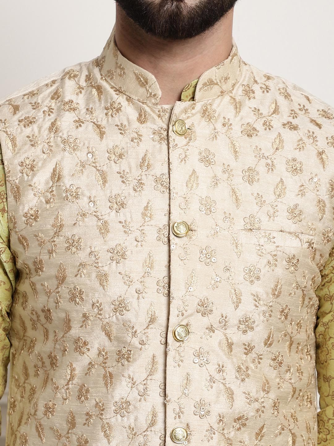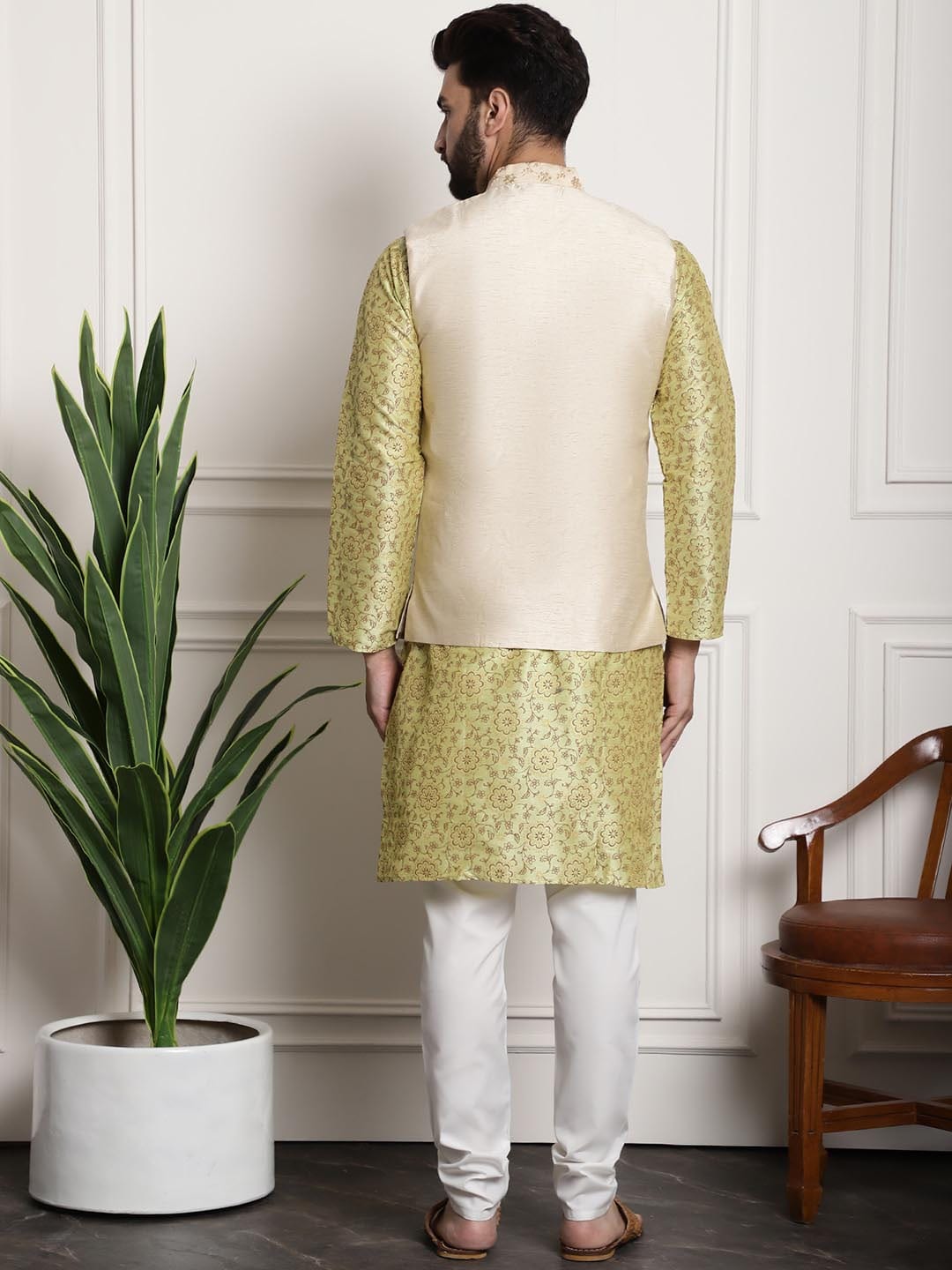 Kurta & Nehru jacket: Silk Blend (80% Silk, 20% Cotton), Bottom: 100% Cotton