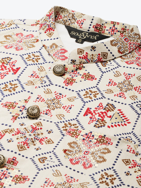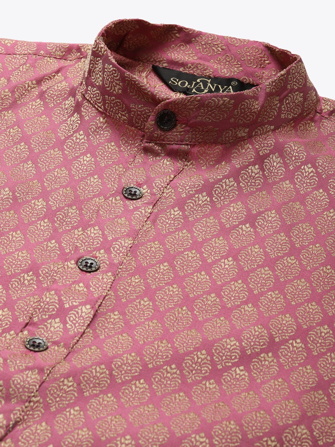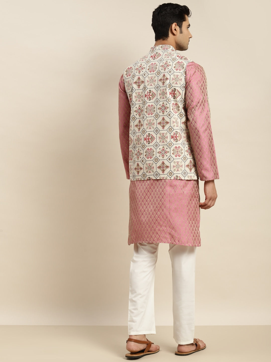 Sojanya Men Pink Ethnic Motifs Kurta with Churidar & Nehru Jacket - Distacart