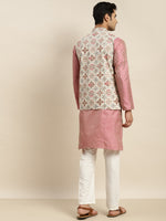 Sojanya Men Pink Ethnic Motifs Kurta with Churidar & Nehru Jacket