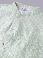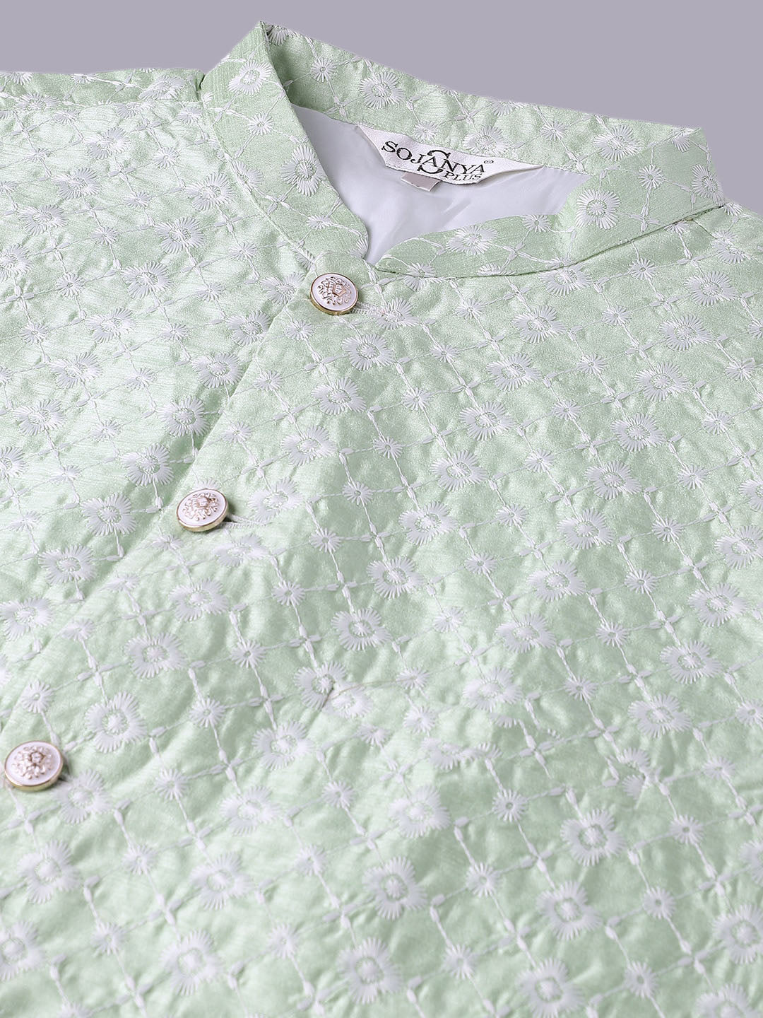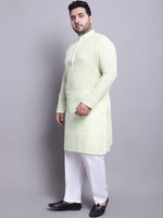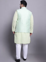 Plus size white, white & green kurta with pyjamas & Nehru jacket
