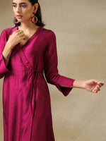 trueBrowns Purple Textured Silk Angrakha Kurta Pant SetDescription Purple silk-blend angrakha kurta set with v-neck and cuff details in the sleeves...