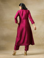 trueBrowns Purple Textured Silk Angrakha Kurta Pant Set