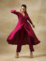 trueBrowns Purple Textured Silk Angrakha Kurta Pant Set - Distacart