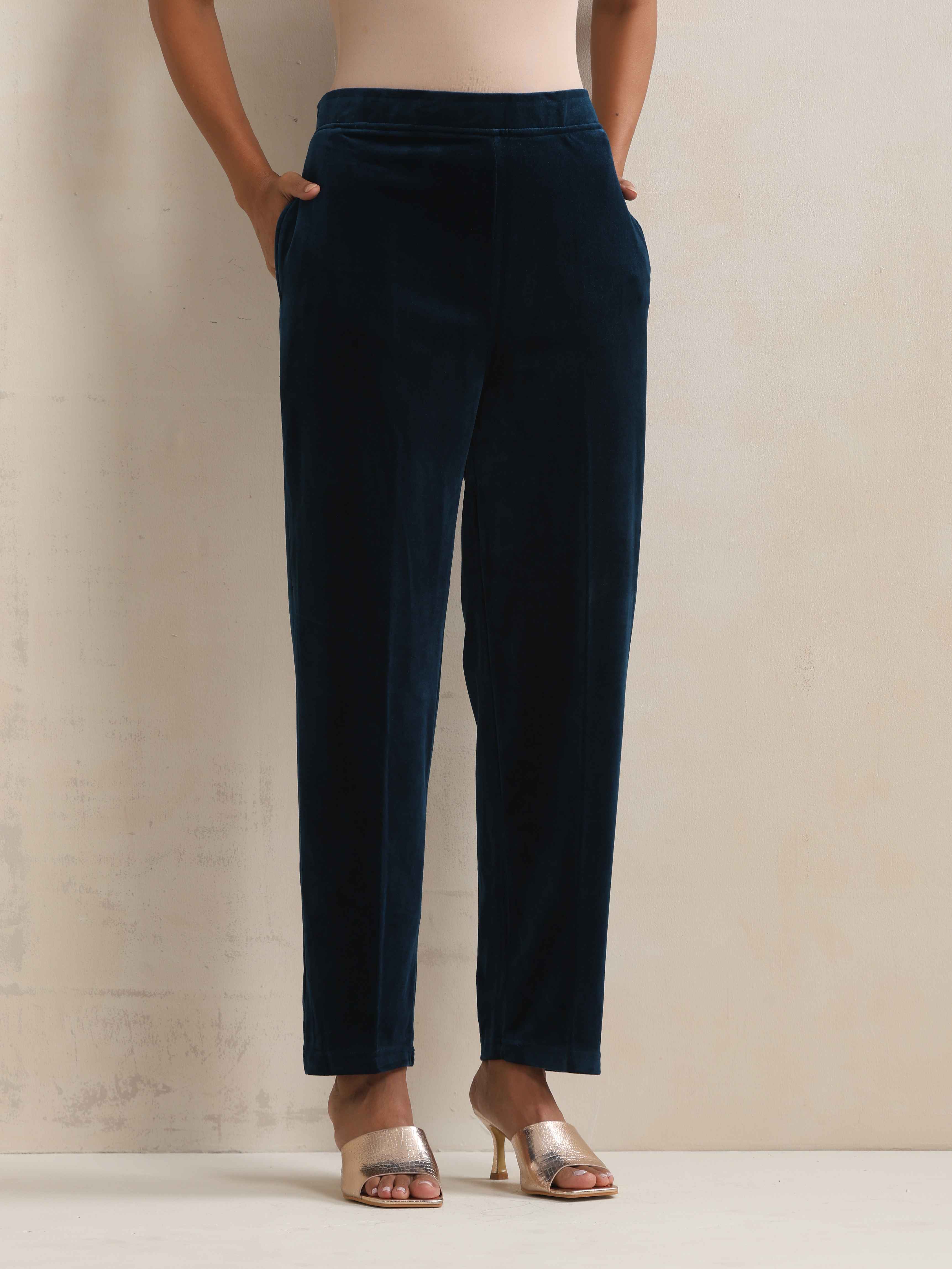 • Elevate your style with this blue velvet floral embroidered kurta pant dupatta set, it's an ideal blend of elegance and comfort.