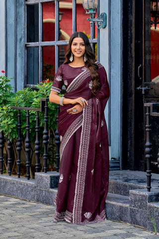 Vastranavya Maroon Rangoli Silk Swarovski work Ready to Wear Saree