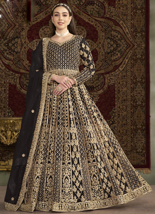 Vegaa Fashion Dark Brown Net Embroidered Anarkali Suit