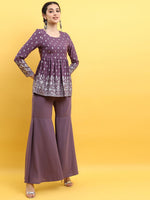 Purple printed Kurta with Sharara with dupatta