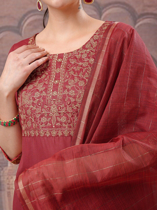 Vishudh Floral Yoke Design Regular Thread Work Kurta with Trousers & With Dupatta - Distacart