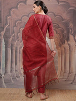 Red yoke design Kurta with Trousers with dupatta
