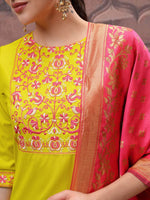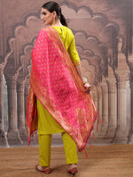 Vishudh Green Embroidered Straight Kurta with Trouser & Dupatta