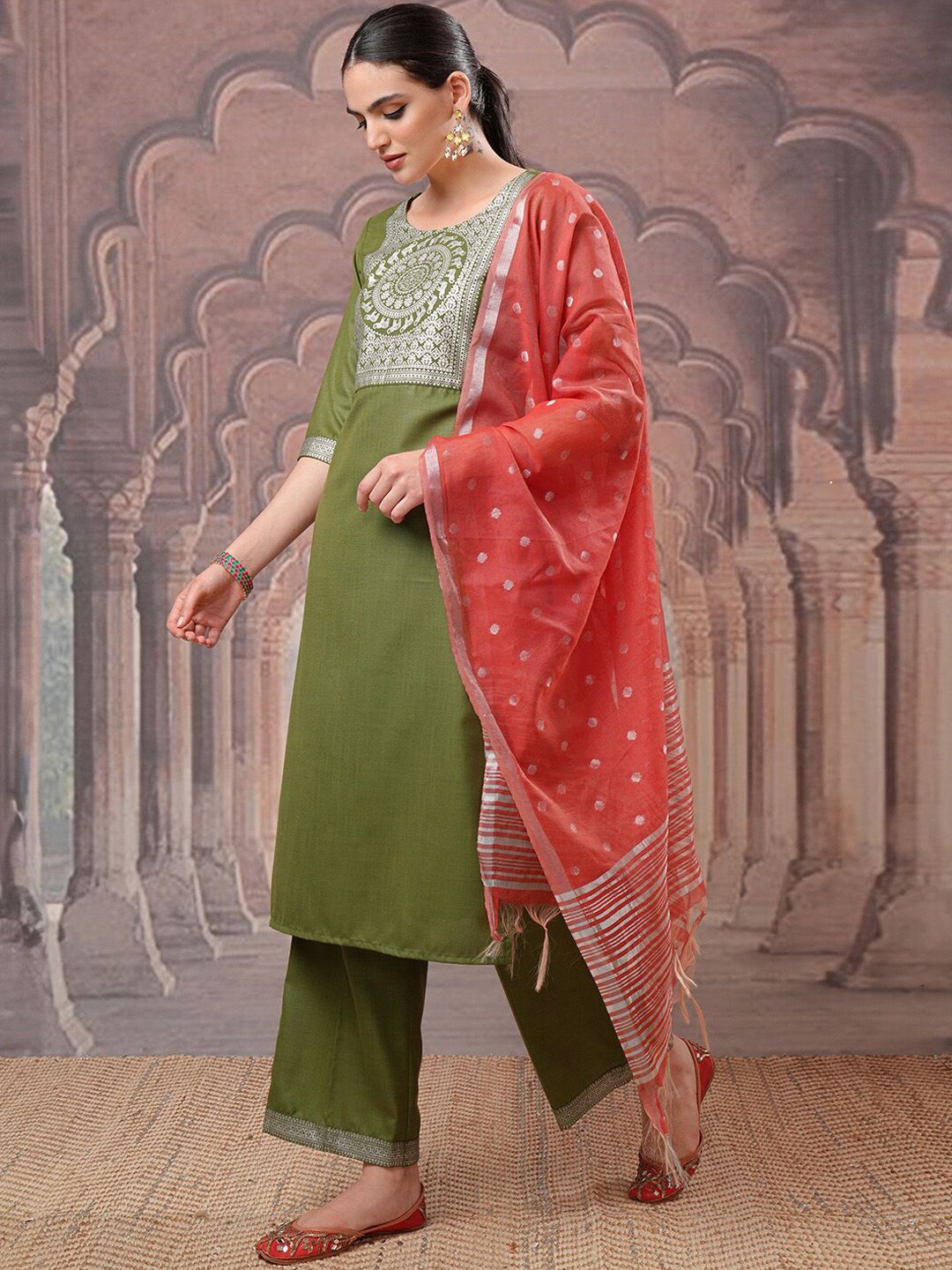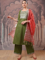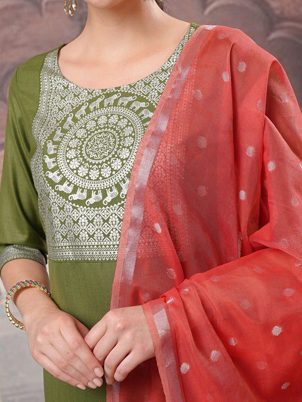 Green printed Kurta with Palazzos with dupatta