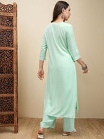 Vishudh Green Floral Embroidered Thread Work Regular Kurta with Trouser - Distacart
