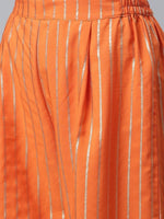 • Crepe Orange Gold Glitter Print Striped Design Straight Palazzo, has a slip-on closure. Let your little Women flaunt her fashionable side with this clothing set from Ahalyaa. Comfy and stylish, it will make her look even more adorable.