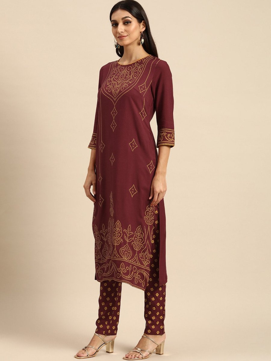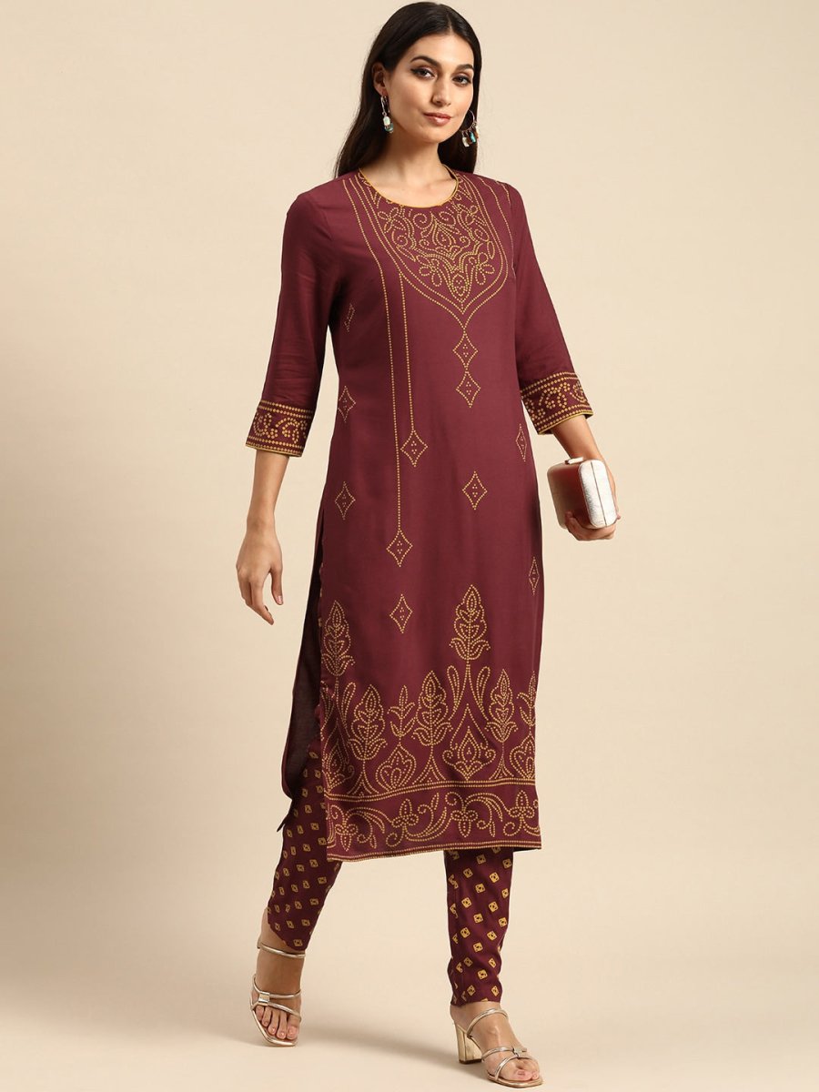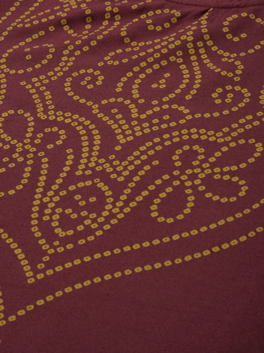 All About You Women Maroon Bandhani Printed Kurta with Trousers