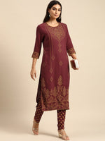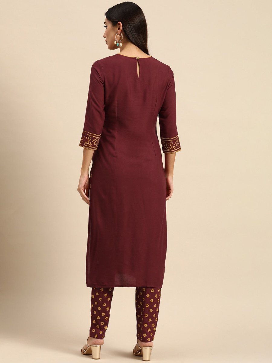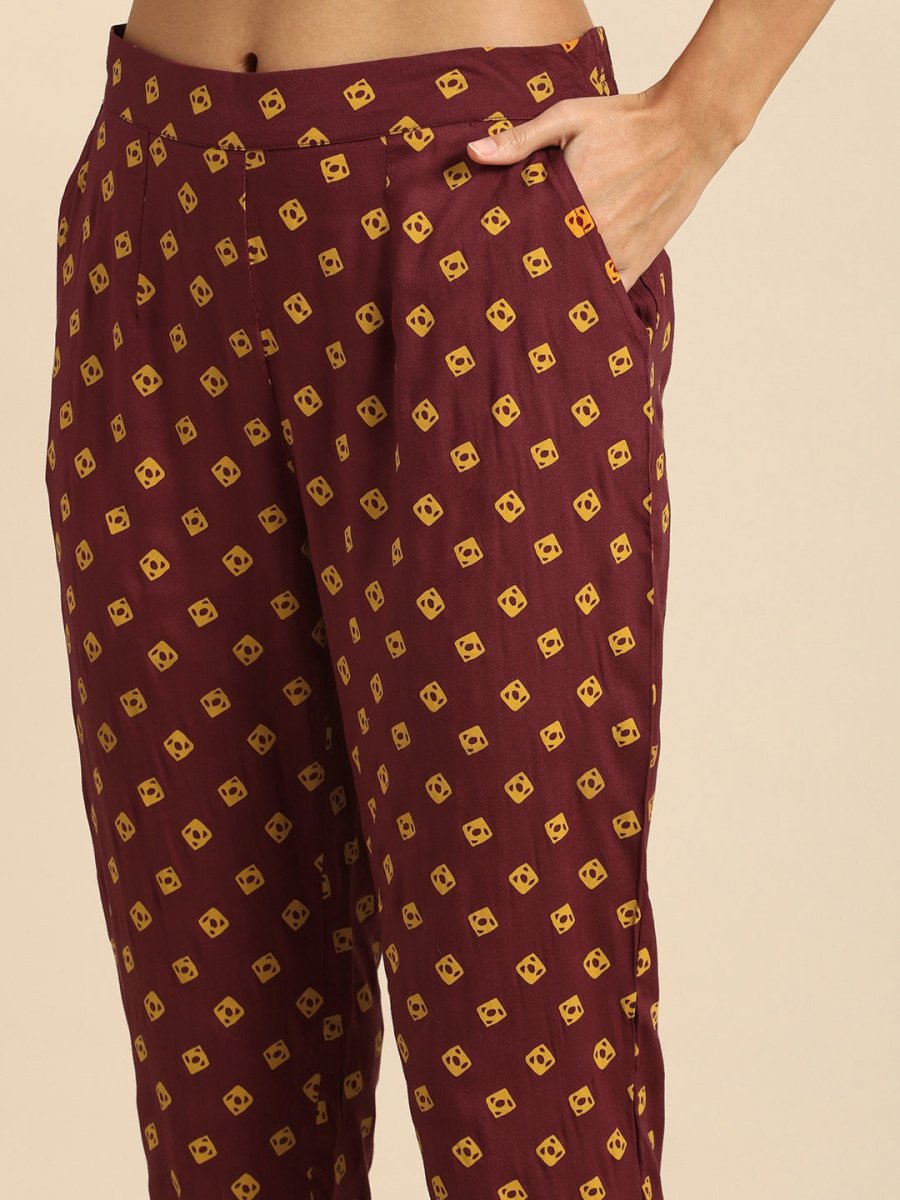 Maroon printed Kurta with Trousers