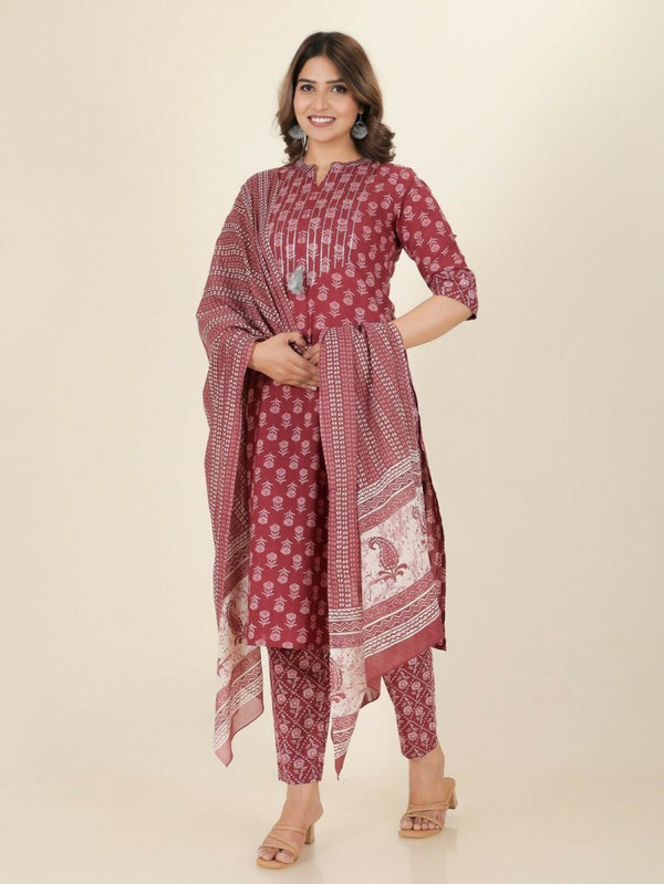 Aramya Straight Soft Cotton Block Print Women's Kurta Set - Pink