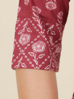 Aramya Straight Soft Cotton Block Print Women's Kurta Set - Pink - M