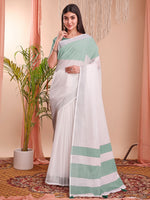 Astita The White Loom White Linen Cotton Saree Color : White Saree Fabrics : Linen Cotton Blouse Fabrics : Linen Cotton Saree Length : 5.5 Mete...