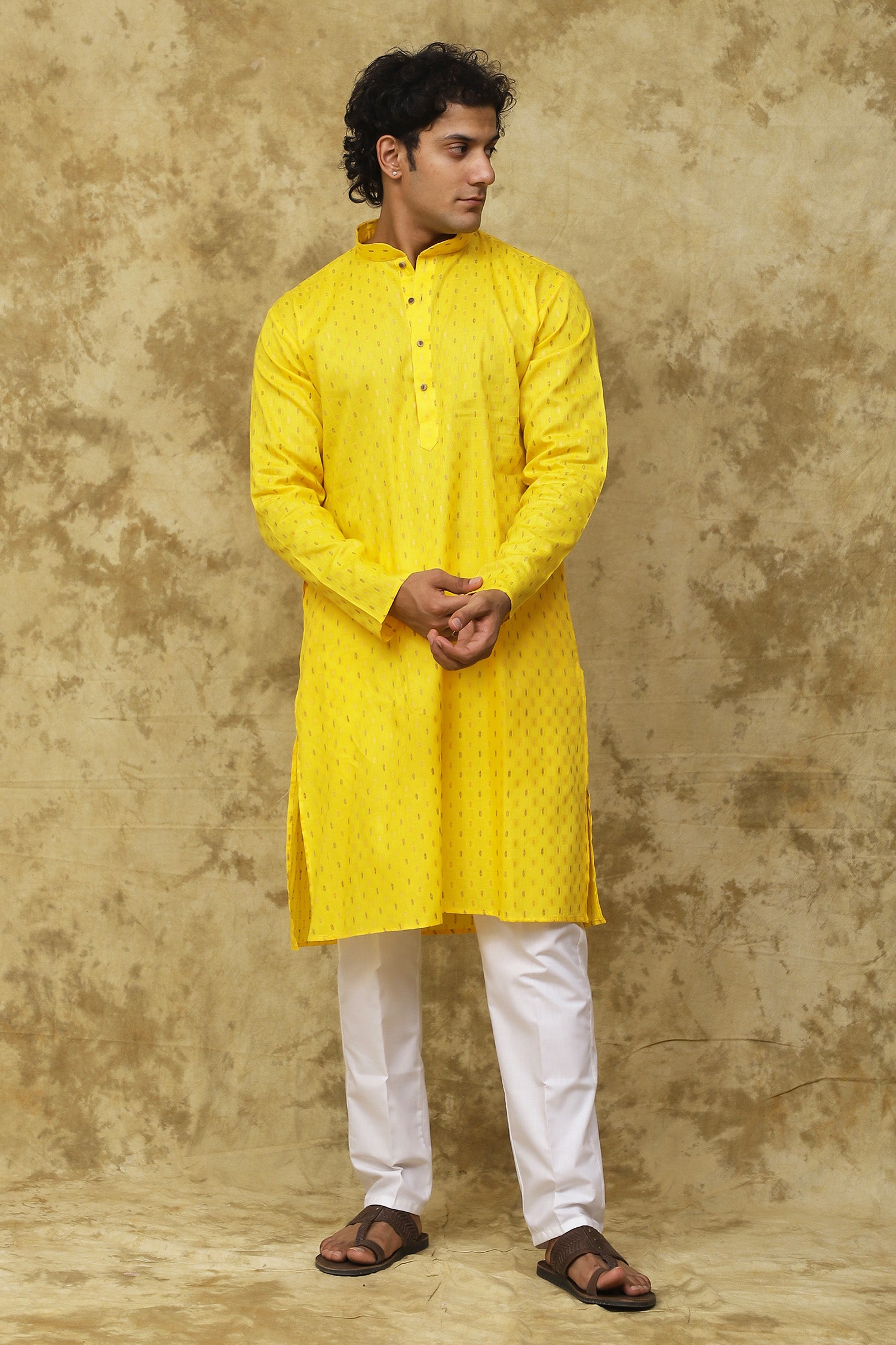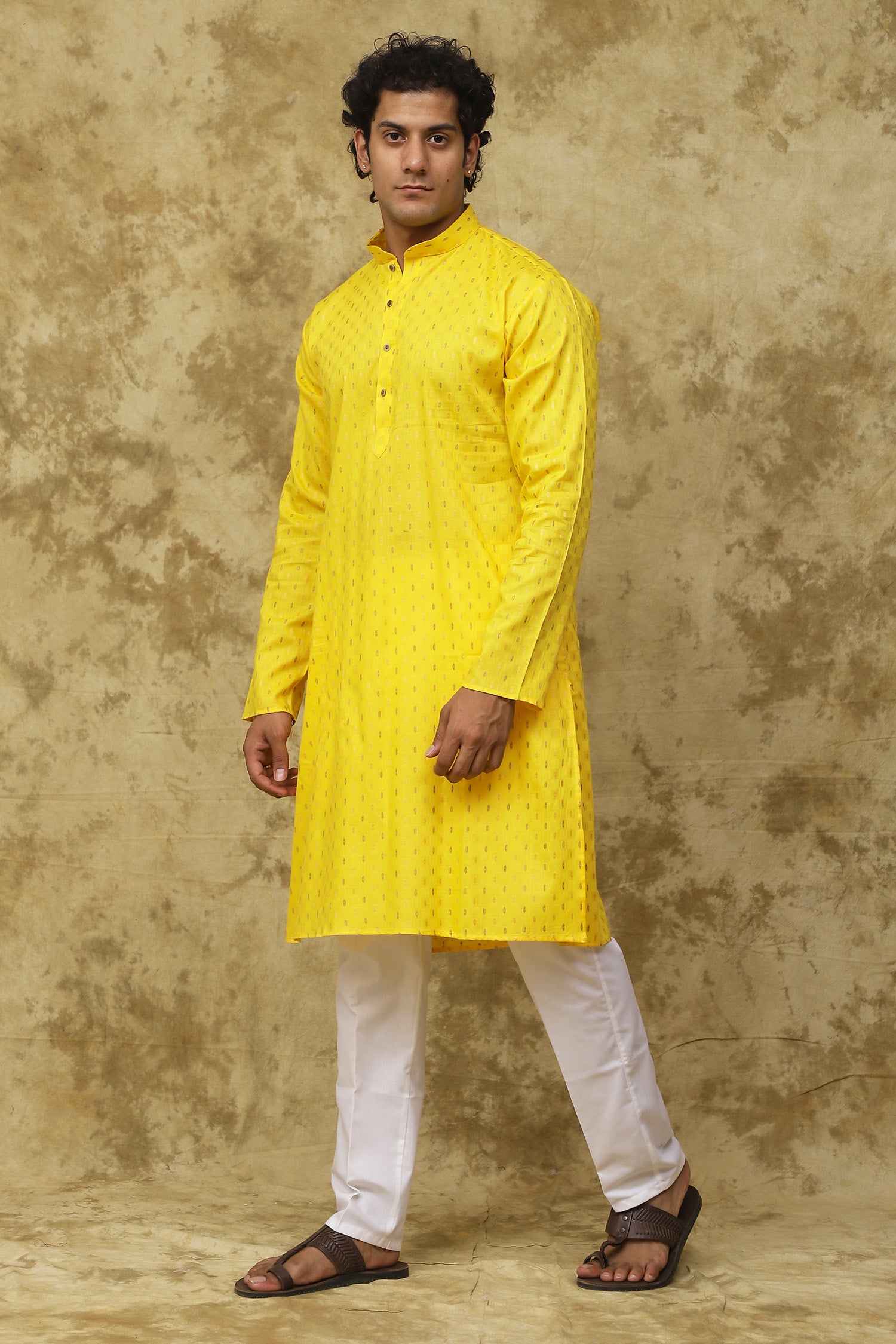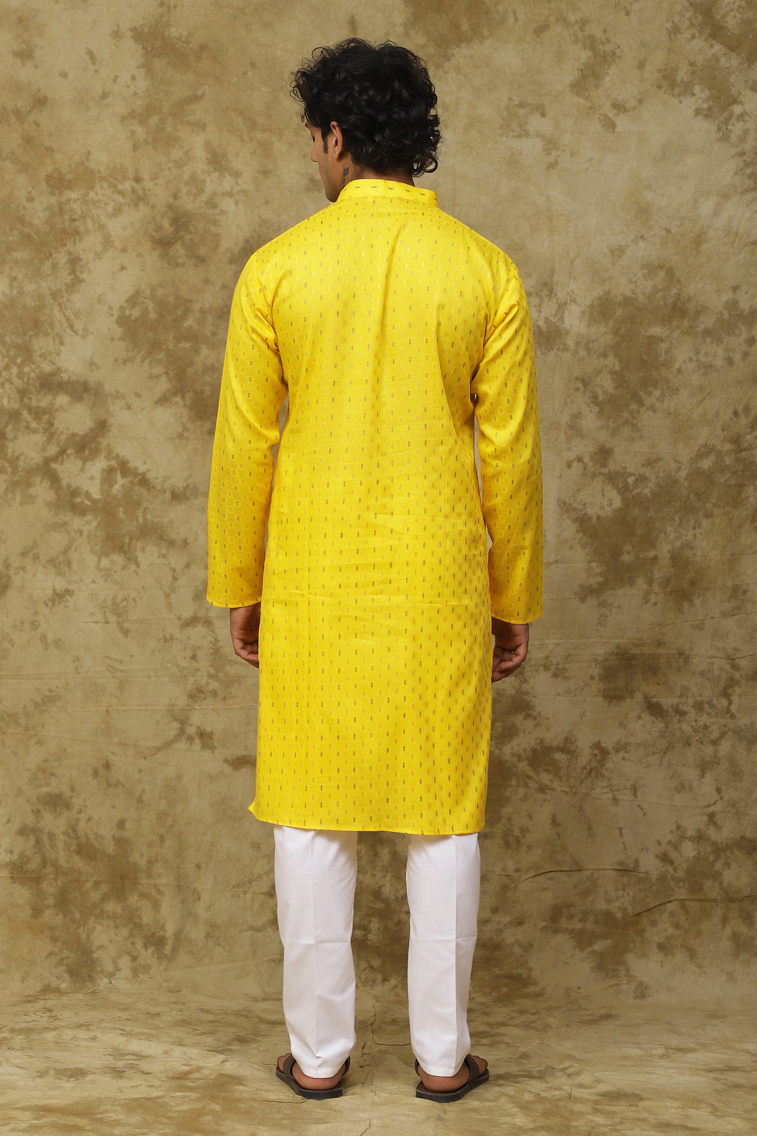 Bluesaanchi Men's Cotton Dobby Kurta Set - YellowAbout the Product: Pack contains: 1 Kurta & 1 Pyjama Top Shape: A Line Top Fabric: COTTON ...