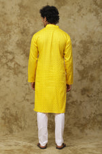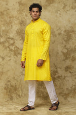 Bluesaanchi Men's Cotton Dobby Kurta Set - Yellow