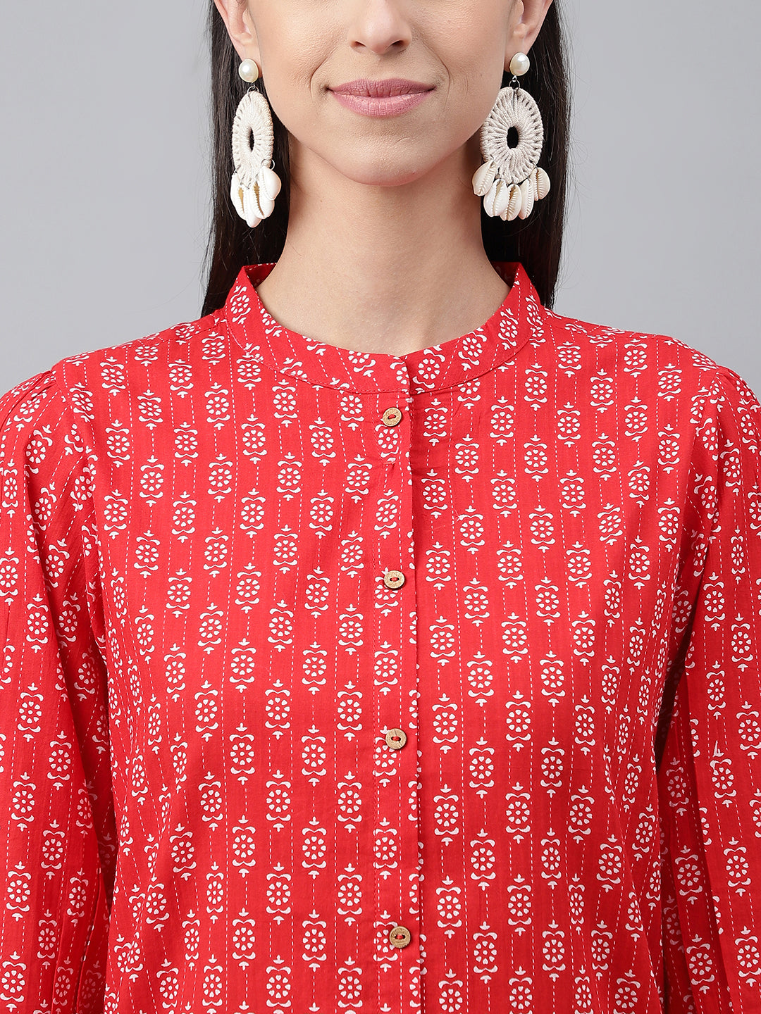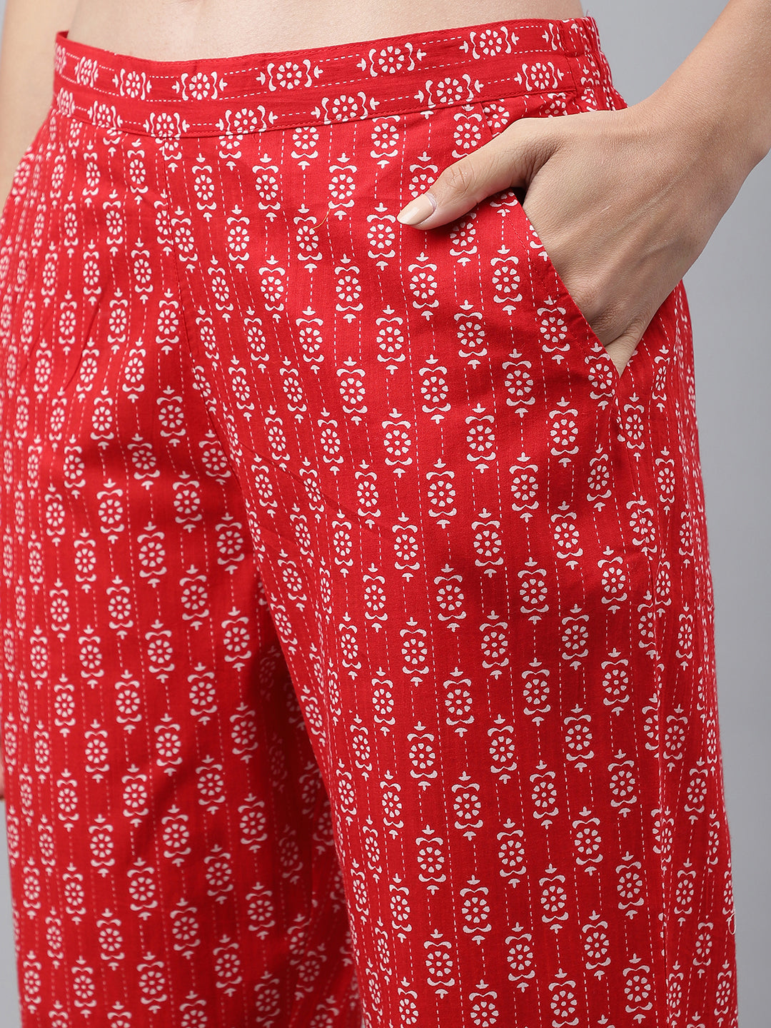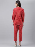 Janasya Women's Red Cotton Ethnic Motifs Regular Casual Top Set Color: Red Fabric: Cotton Pattern: Ethnic Motifs Occasion: Casual Top Typ...
