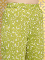 Ode by House of Pataudi Women Green Ethnic Motifs Printed Panelled Pure Cotton Kurta with Trousers & With