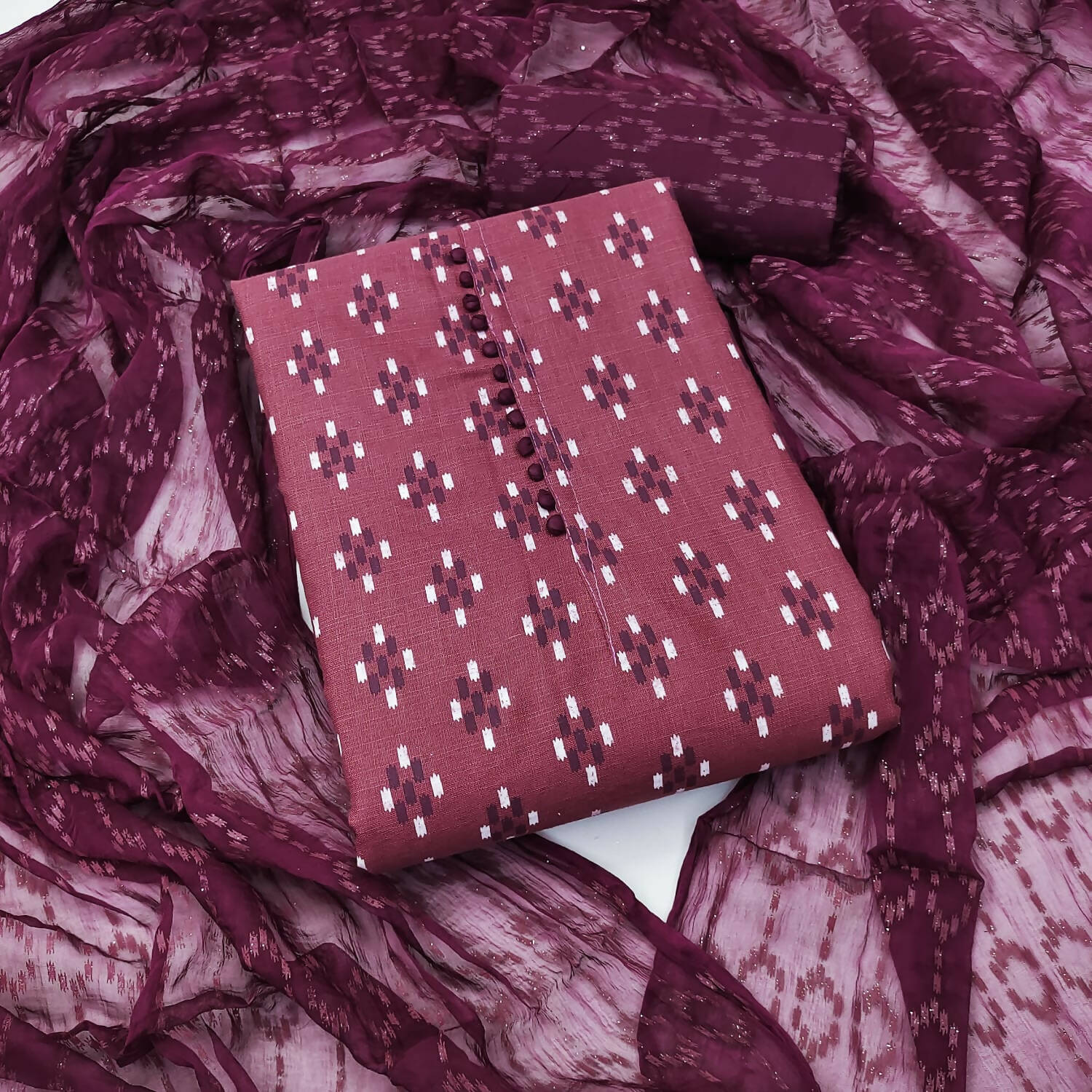 Flaunt a new ethnic look with this dress material. Cotton suit is beautifully adorned with Print work. Women can buy this suit to wear for their upcoming festivals, homely functions, parties, kitties, weekend get together. Get this unstitched suit stitched according to your fit and comfort. Team it with stylish accessories to make your looks more beautiful. Note : - The actual product may differ slightly in colour and design from the one illustrated in the images when compared with a computer or mobile screen.