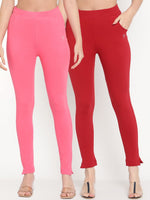 TAG 7 Set Of 2 Pink & Red Solid Leggings