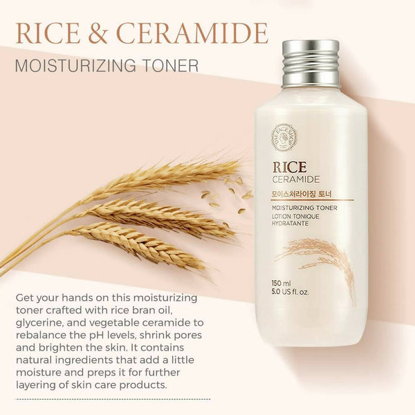 • The Face Shop Rice & Ceramide Moisturizing Facial Toner cleanses skin of any remaining residues and impurities left behind by your cleanser. This toner finely tightens enlarged pores and mildly replenishes skin with long-lasting moisture.